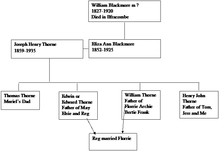 May I give thanks here to my cousins Ruth Phillips and Roger Thorne and also to a good friend Dawn Grisenti (descended from the Garnish family) for both confirming the information I had and for greatly extending the family tree of the Thorne and Blackmore families?
