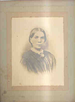 The photograph is not conclusively one of Eliza Ann. But there are two copies known to be in existence. One belonged to her brother, William Henry Blackmore, and is now with his grandson. The other is with my first cousin Geraldine (great grand daughter of Eliza Ann). So the picture is obviously of one of the Blackmore family. One copy has an inscription on the back that can't be seen as the photograph is sealed behind glass. But it apparently says that it was William Blackmore's wife, Anne Guard, and was taken when she was 56 in 1907. This description doesn't make sense as there is no record of William marrying again and he was 81 in 1907. The Guard name does appear in the family and so it was possibly of another member of the family, but why then was it passed down through the generations. The picture appears to be of a woman who is much younger than 56 and certainly appears to be of a much earlier type of picture than ones taken in the early 1900s. Hence, my belief is that it might have been the daughter of William Blackmore and that the picture was taken before he went overseas - around 1870. If that is the case then it would be Eliza Ann Blackmore, who would be aged about 18. This would fit much more with the picture. Discussion with others about the picture note that the features - centre parting of hair, ears uncovered, lace collar, central brooch - suggest that the picture was indeed from the 1860s - 1870s. But that the subject appears to be in her 20s. The name Guard that appears on the picture frame has now been solved - The descendants started to research the family history and obtained a birth certificate for a William Henry Blackmore born in Tiverton in Sep qtr 1854 and his mother was Ann Guard. But all the evidence shows that this was not the correct person.